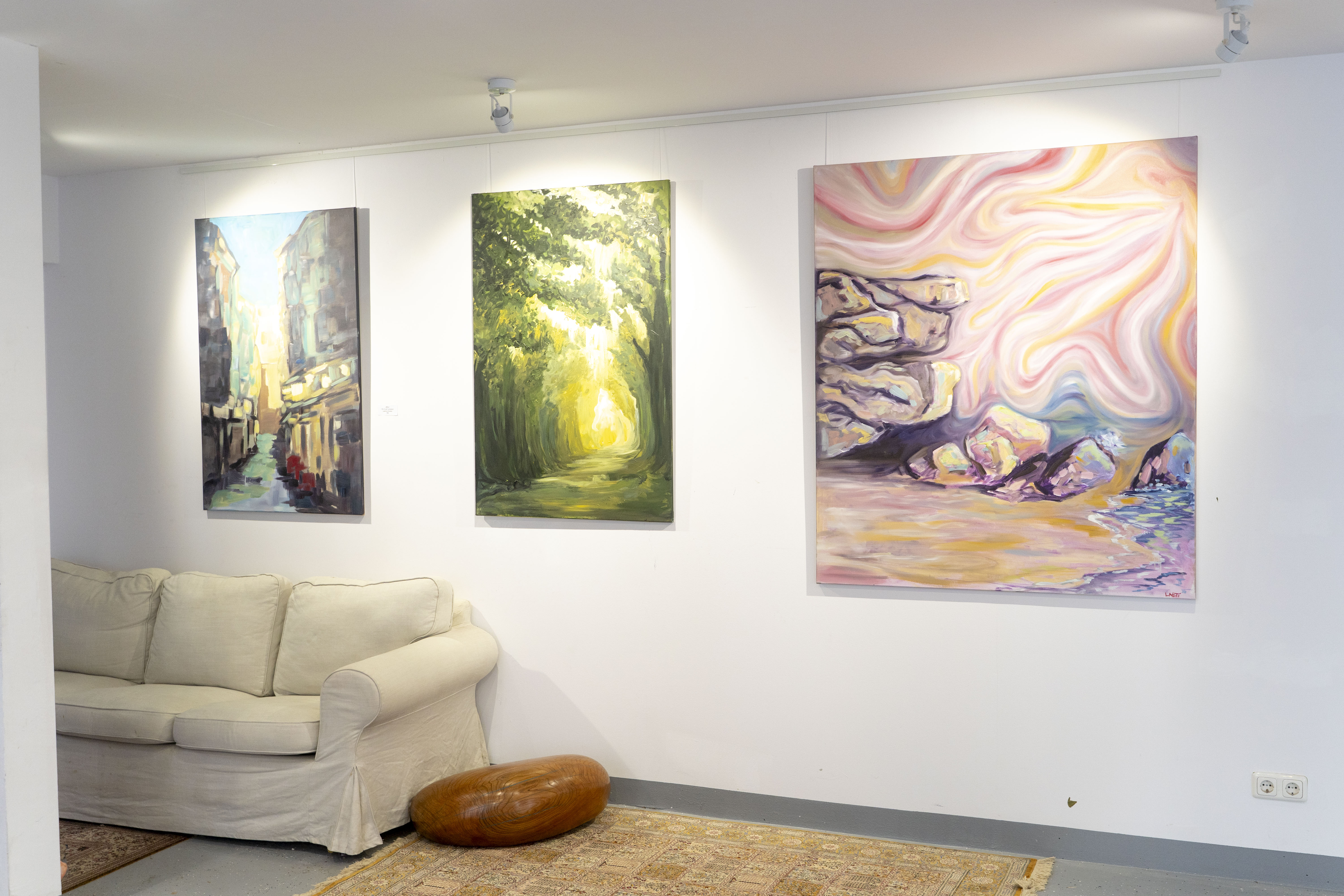 Die Ausstellung vereint drei künstlerische Handschriften, die sich zwischen Malerei und Skulptur, Figuration und atmosphärischer Auflösung bewegen. Gemeinsam ist den Arbeiten eine starke emotionale und sinnliche Präsenz sowie das Interesse an Übergängen: zwischen Landschaft und Innenraum, Körper und Umgebung, Individuum und Gemeinschaft.